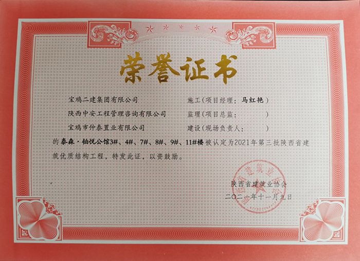 2021年度陜西省建筑優(yōu)質(zhì)結(jié)構(gòu)工程(泰森 ? 鉑悅公館3#、4#、7#、8#、9#、11#樓)